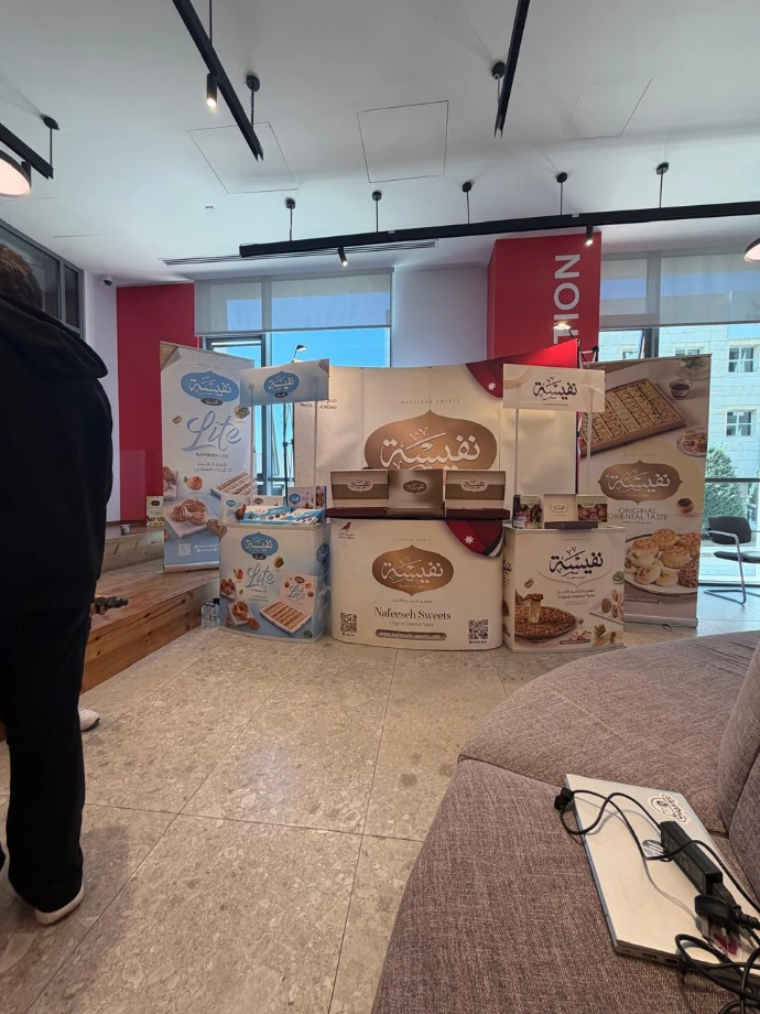 Representing Nafeeseh Sweets at the Global Week at Al Hussein Technical University.